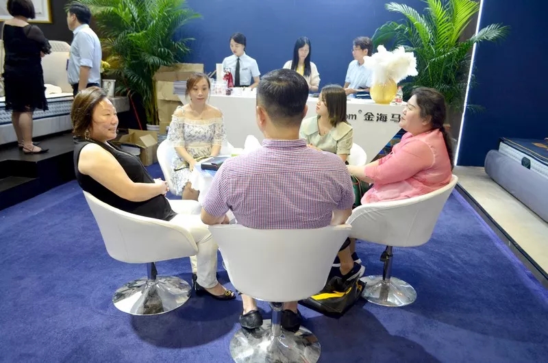 本次展會,金海馬攜多款新品亮相展館。到訪的客戶細(xì)致地了解產(chǎn)品的材質(zhì)與性能,經(jīng)過的客商朋友也紛紛繞足走進(jìn)金海馬展館內(nèi)欣賞并體驗我們的床墊。