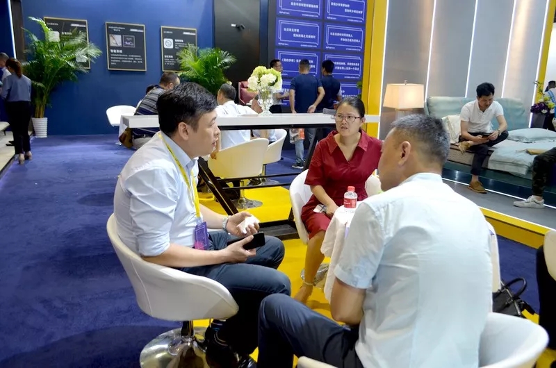 金海馬家具有限公司董事長傅小燕傅總親臨展館現(xiàn)場,并與到訪的客戶熱情交流